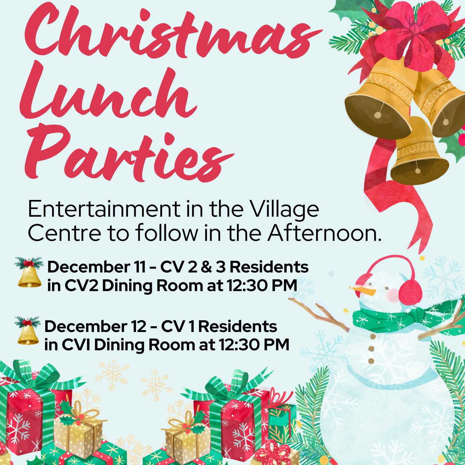 THURSDAY, DECEMBER 11 – CV2 & CV3 Residents Only