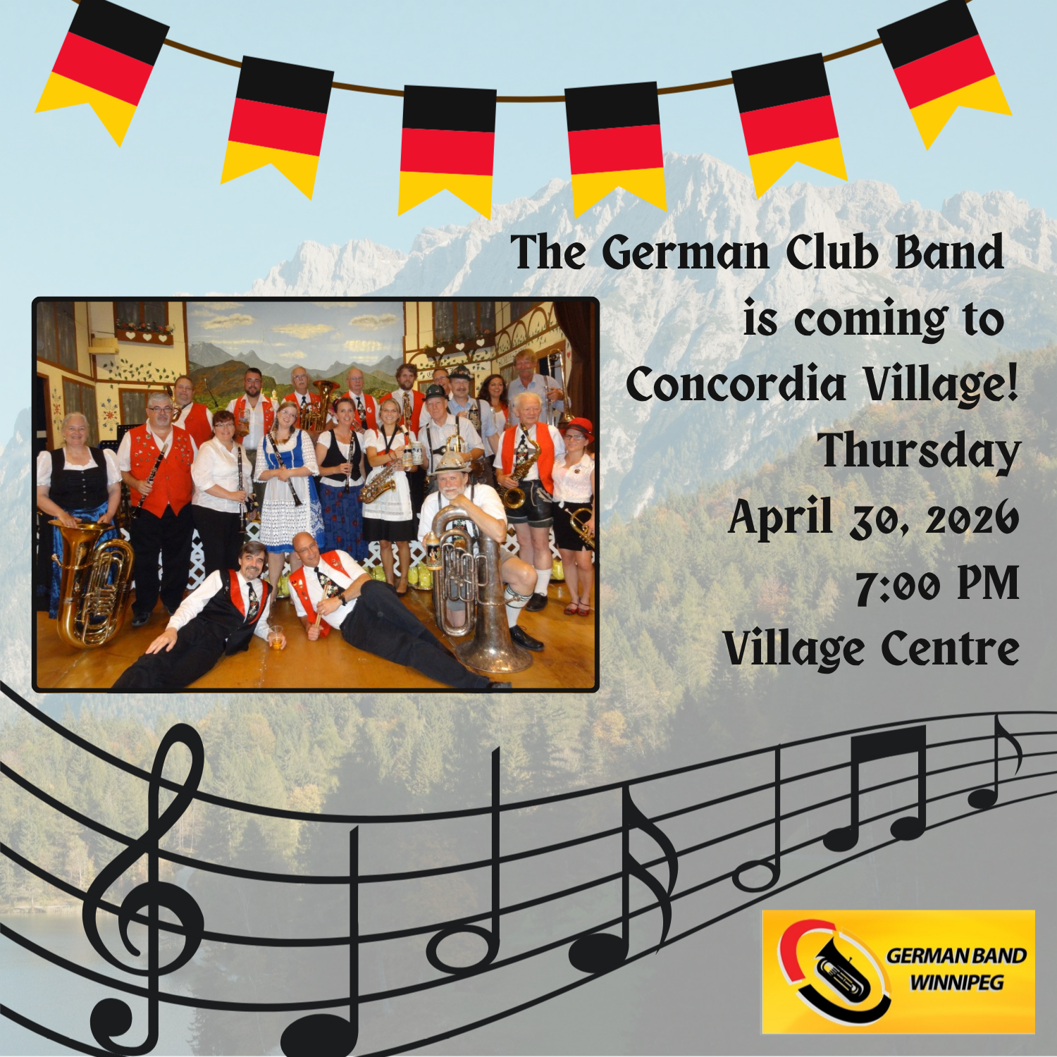 The German Club Band Winnipeg is coming to Concordia Village for evening of entertainment! Invite your friends!